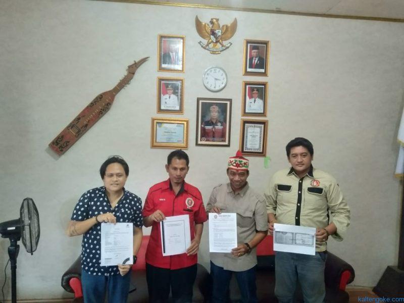 Pengurus Fordayak Kalteng saat melakukan konferensi pers. Dari kiri Theo Virgen Lambung selaku Ketua DPW Fordayak Kalteng, Bambang Irawan selaku Ketua Umum DPP Fordayak, Bakti Yusuf Irwandi selaku Koordinator Tim Identifikasi Dumas (Pengaduan Masyarakat) DPP Fordayak dan Sameon S. Siwung selaku Bendahara DPW Fordayak Kalteng. Foto:Ist