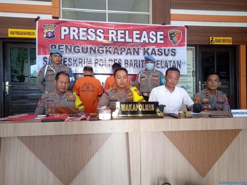 “Aksi mereka ketahuan setelah Polsek Karau Kuala, menerima laporan dari lima orang yang merasa tertipu dan dirugikan dari pembelian emas yang diduga imitasi/palsu tersebut,” ujar Wakapolres Barsel, Kompol Johari Fitri Casdy saat menggelar pres release, Rabu (15/2/2023).